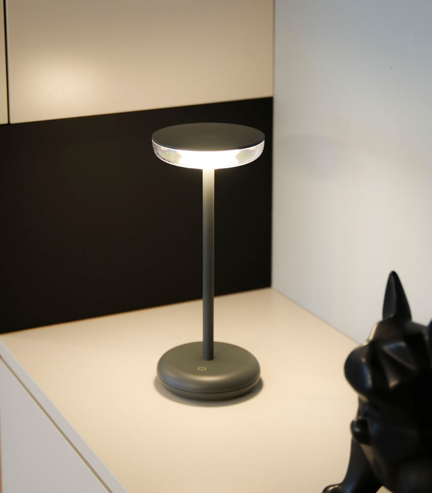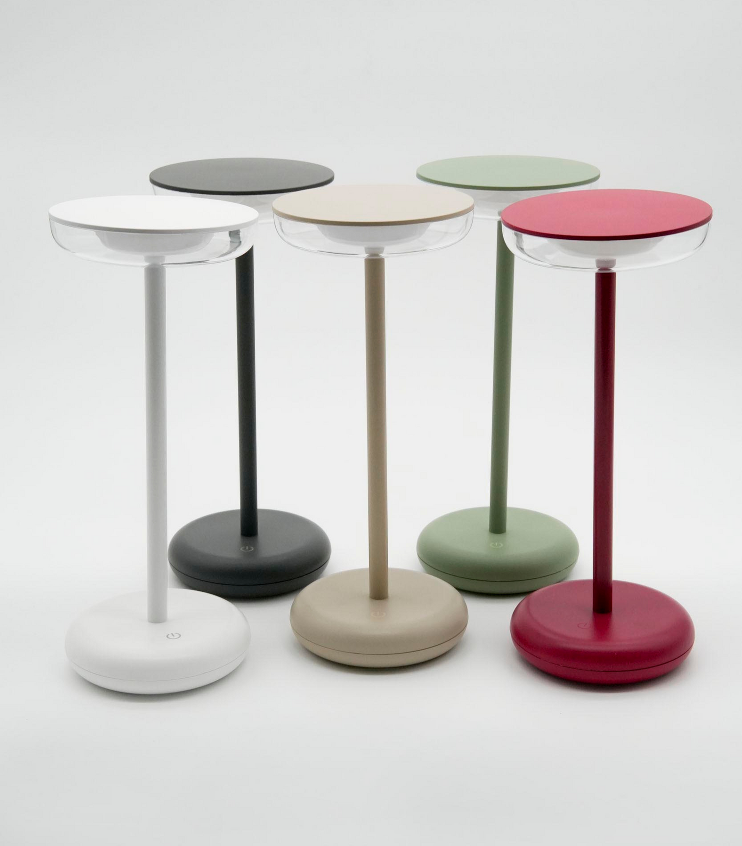 Wiederaufladbare und tragbare Tischlampe aus Metall und lackiertem ABS für den Innen-/Außenbereich (IP44).