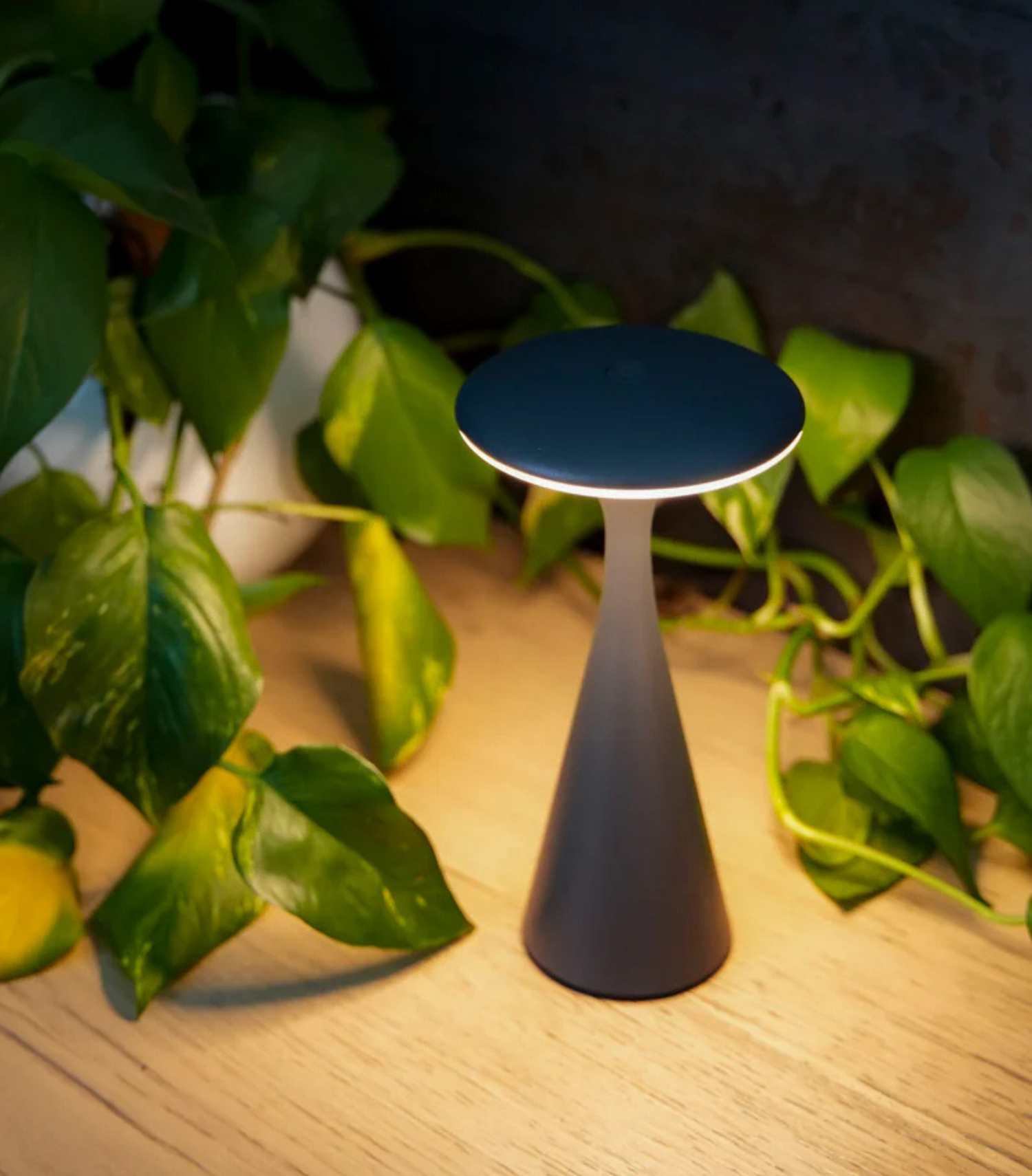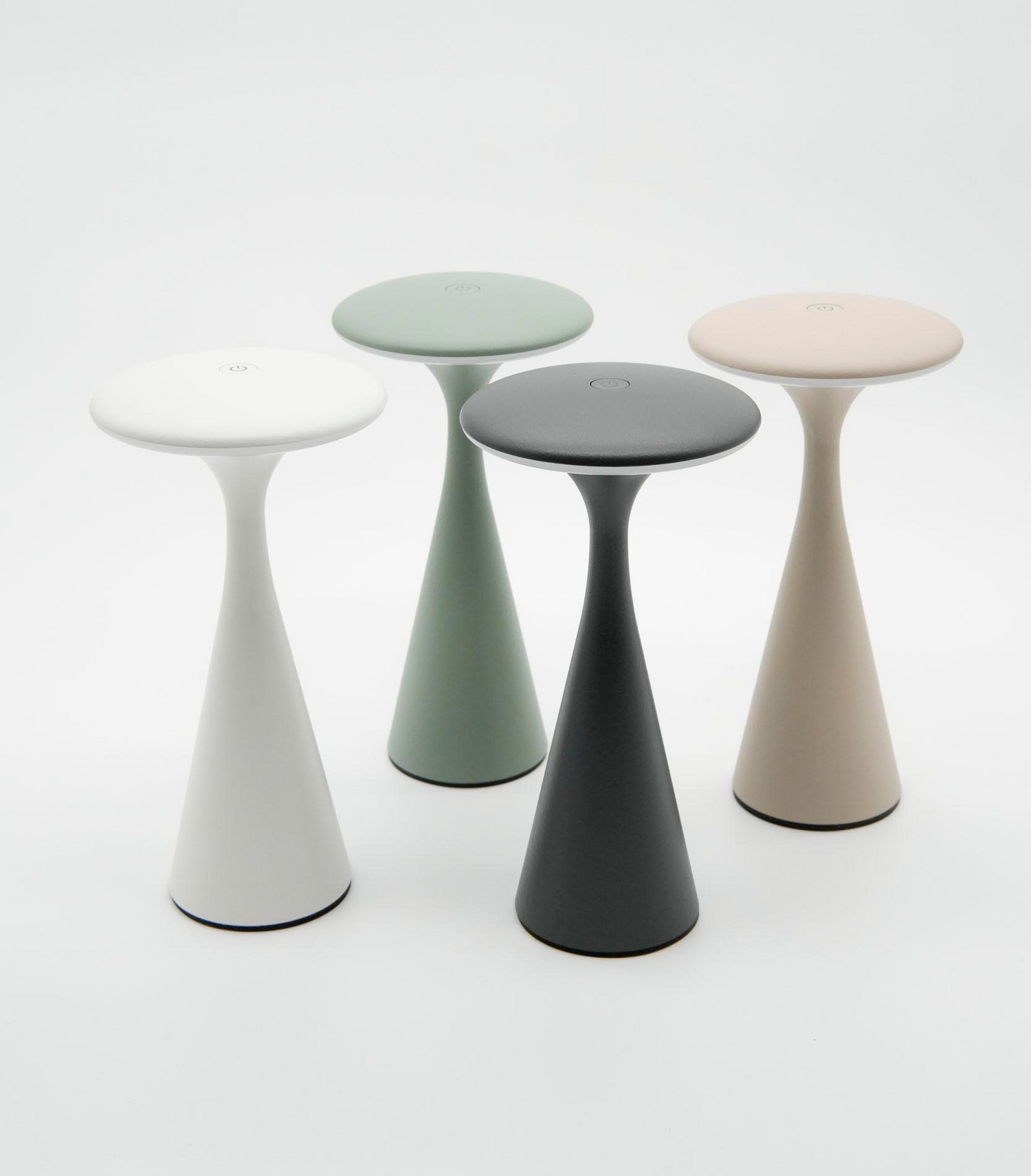 Wiederaufladbare Tischleuchte aus pulverbeschichtetem Aluminiumdruckguss für den Innen-/Außenbereich (IP54).