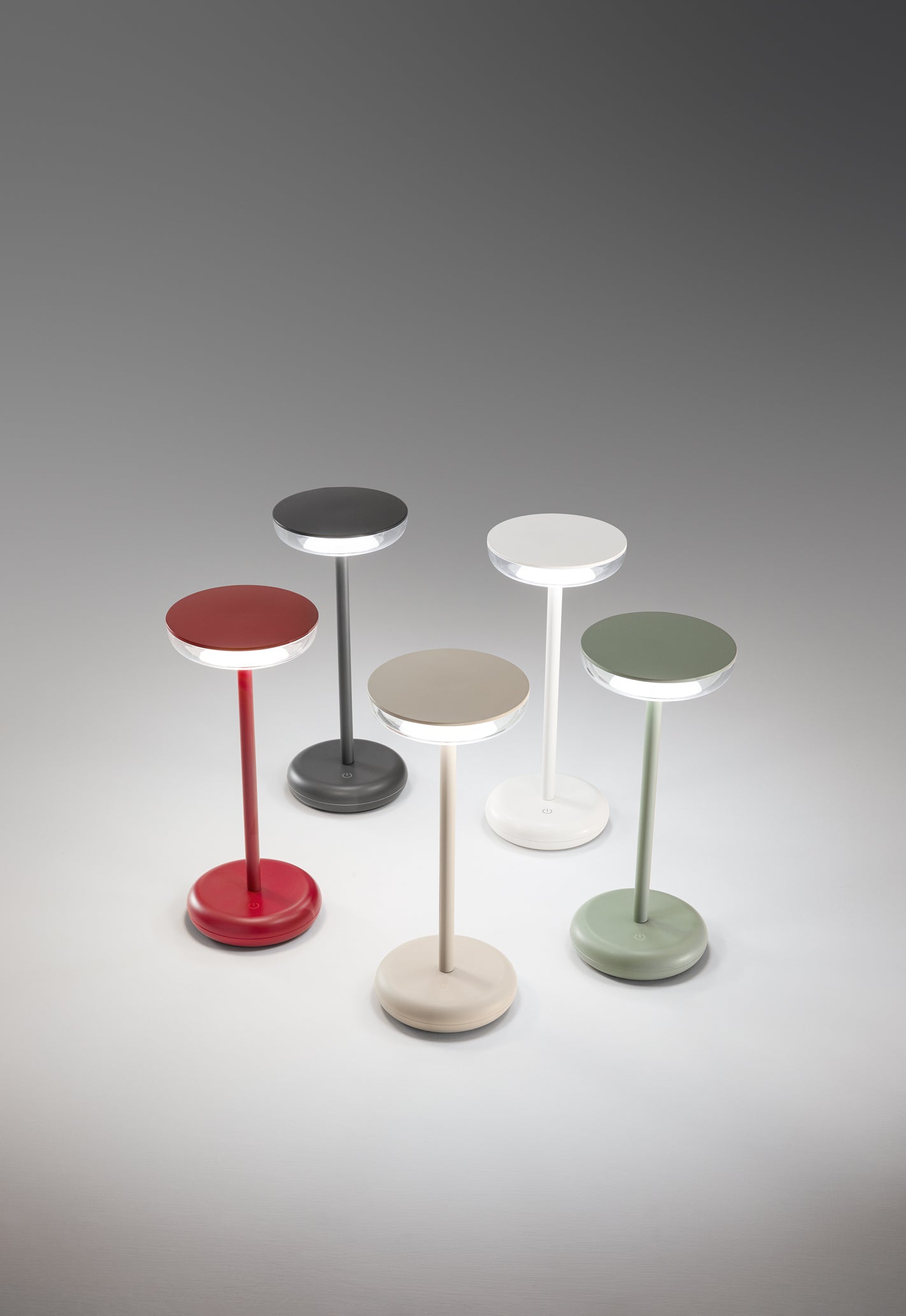 Rechargeable and portable table lamp in metal and painted ABS for indoor/outdoor use (IP44).