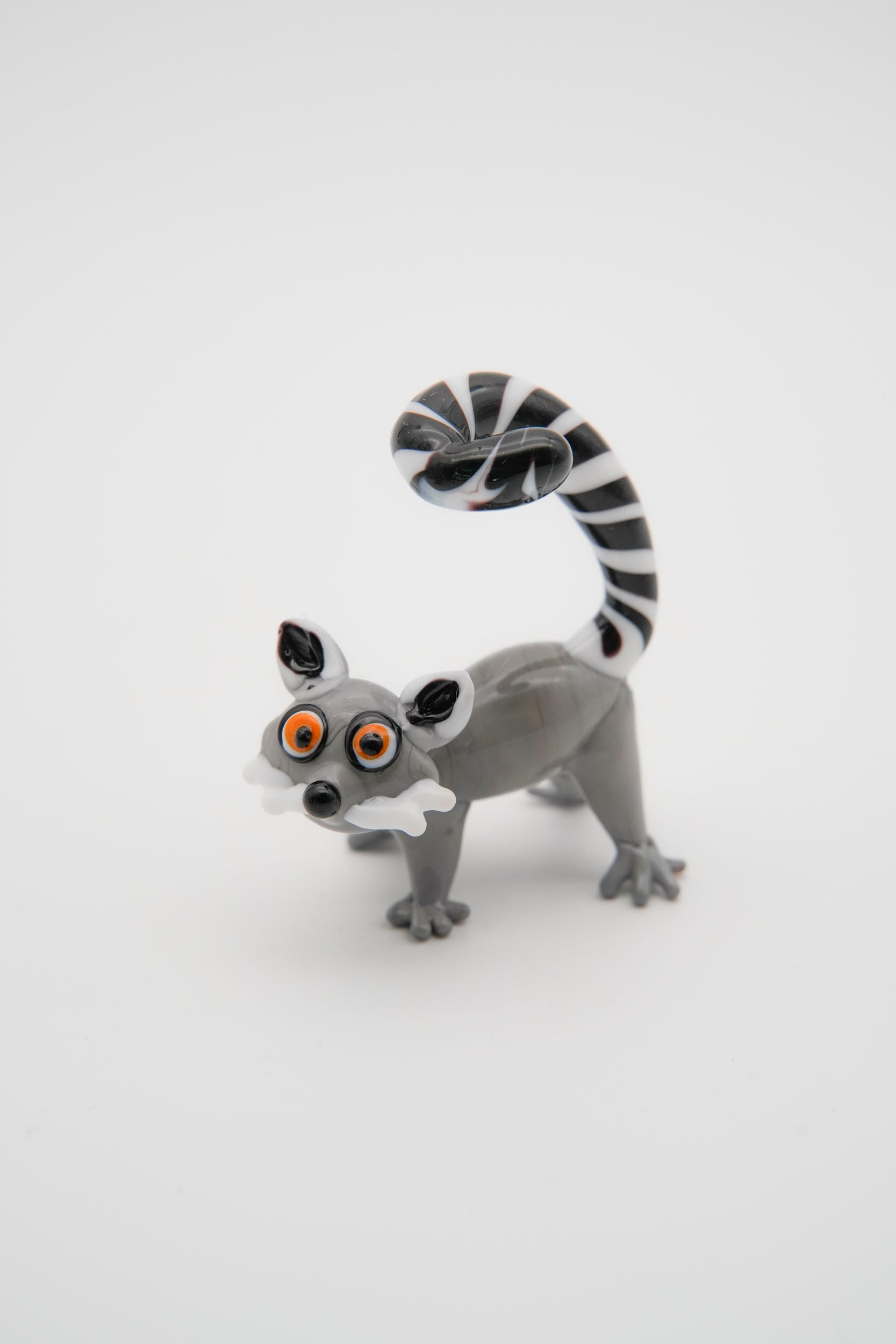 Questo lemure in vetro soffiato, interamente lavorato a mano, è un pezzo unico che unisce simpatia e raffinatezza. Il corpo grigio levigato è arricchito da dettagli bianchi e neri sulla coda, che ne esaltano la vivacità. Gli occhi arancioni sporgenti donano espressività e carattere, trasformando questa creazione in un esempio di autentica maestria artigianale capace di catturare l’attenzione in qualsiasi ambiente.