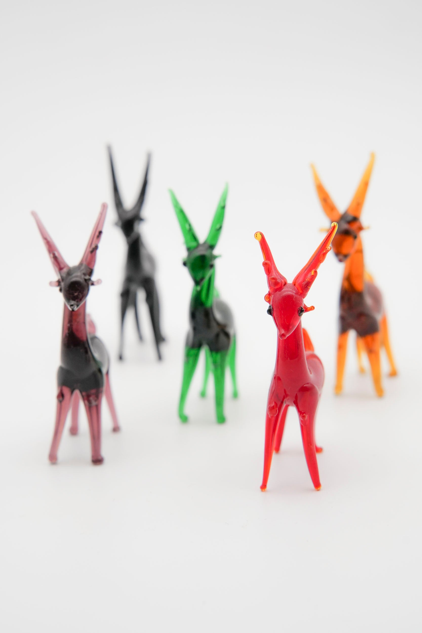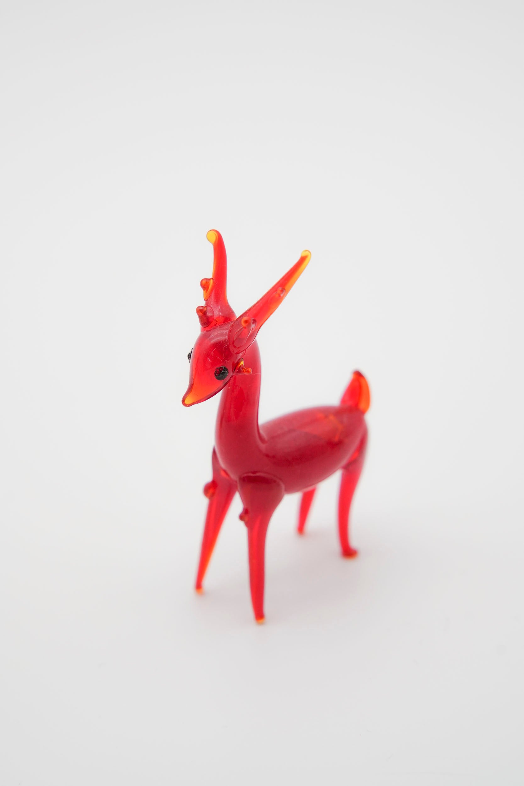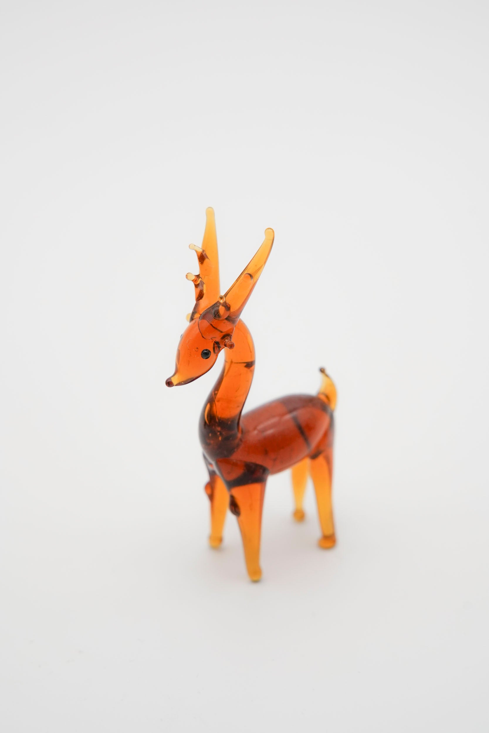 Un raffinato cerbiatto in vetro soffiato, modellato interamente a mano con maestria artigianale. Simbolo di grazia e armonia, questa mini scultura cattura la delicatezza della natura con linee eleganti e proporzioni raffinate, trasformandosi in un pezzo unico capace di unire leggerezza e carattere.