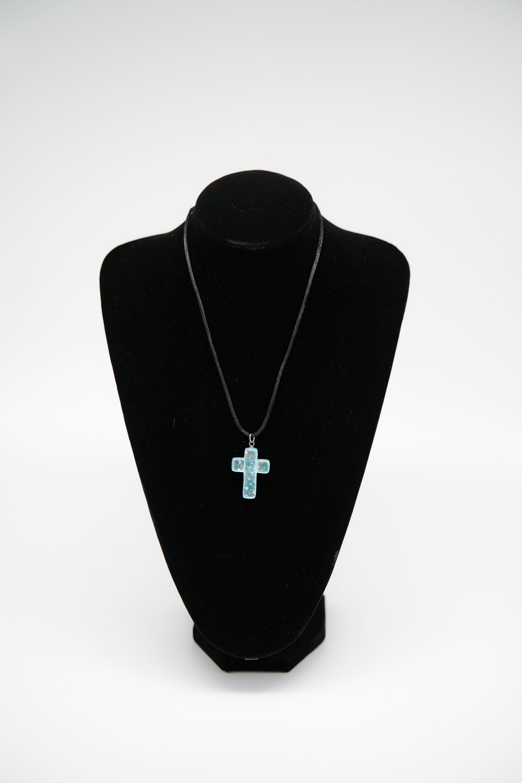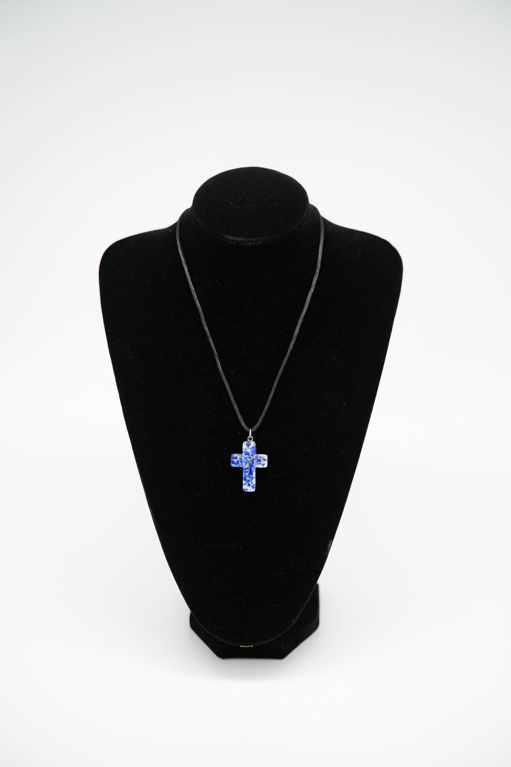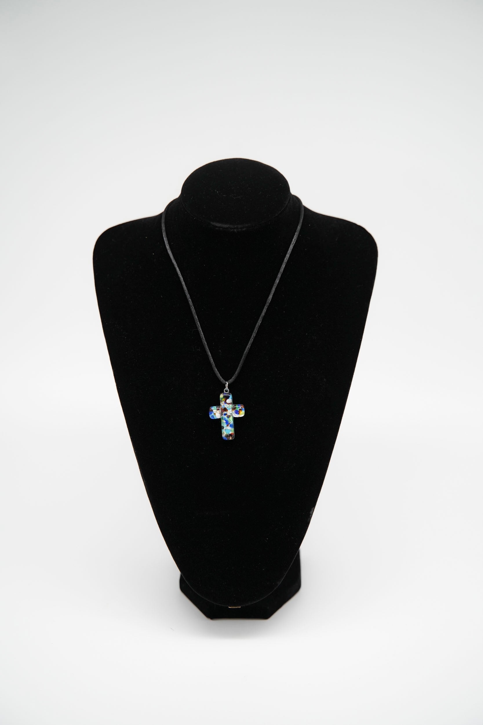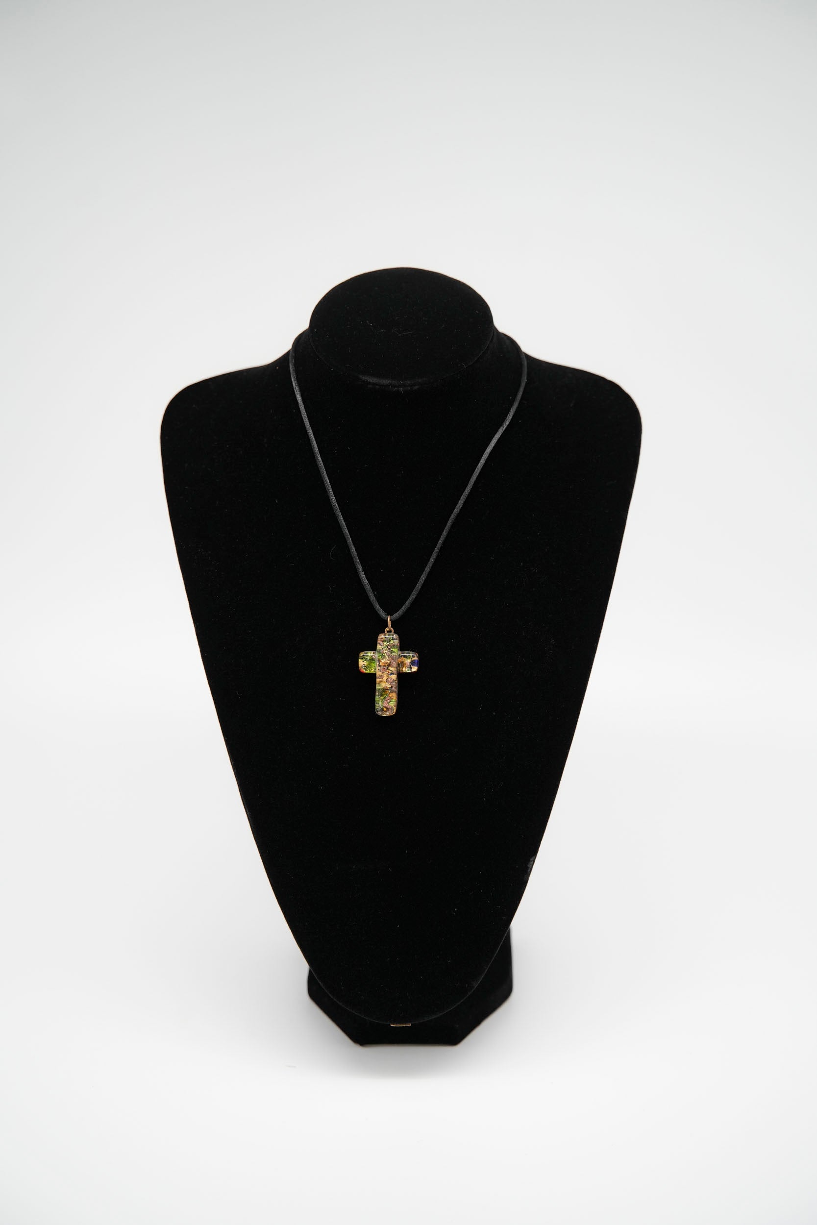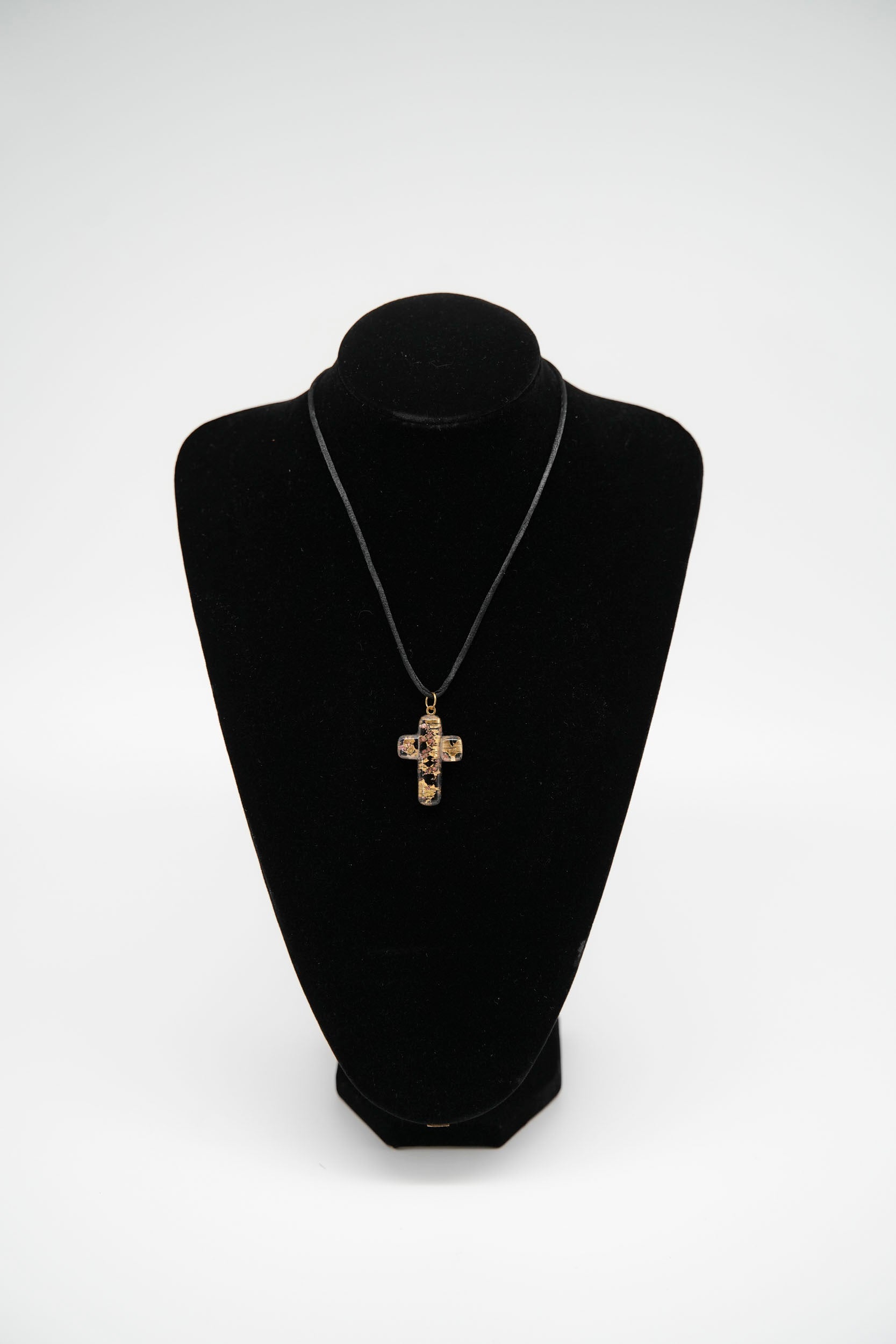 Raffinata collana con pendente a forma di croce realizzato in vetro di Murano con la tradizionale tecnica delle murrine. Ogni croce presenta un mosaico di colori e motivi unici, frutto dell’arte vetraria veneziana, che dona eleganza e originalità al gioiello. La catena leggera e resistente completa il design, rendendola perfetta da indossare tutti i giorni o nelle occasioni speciali.