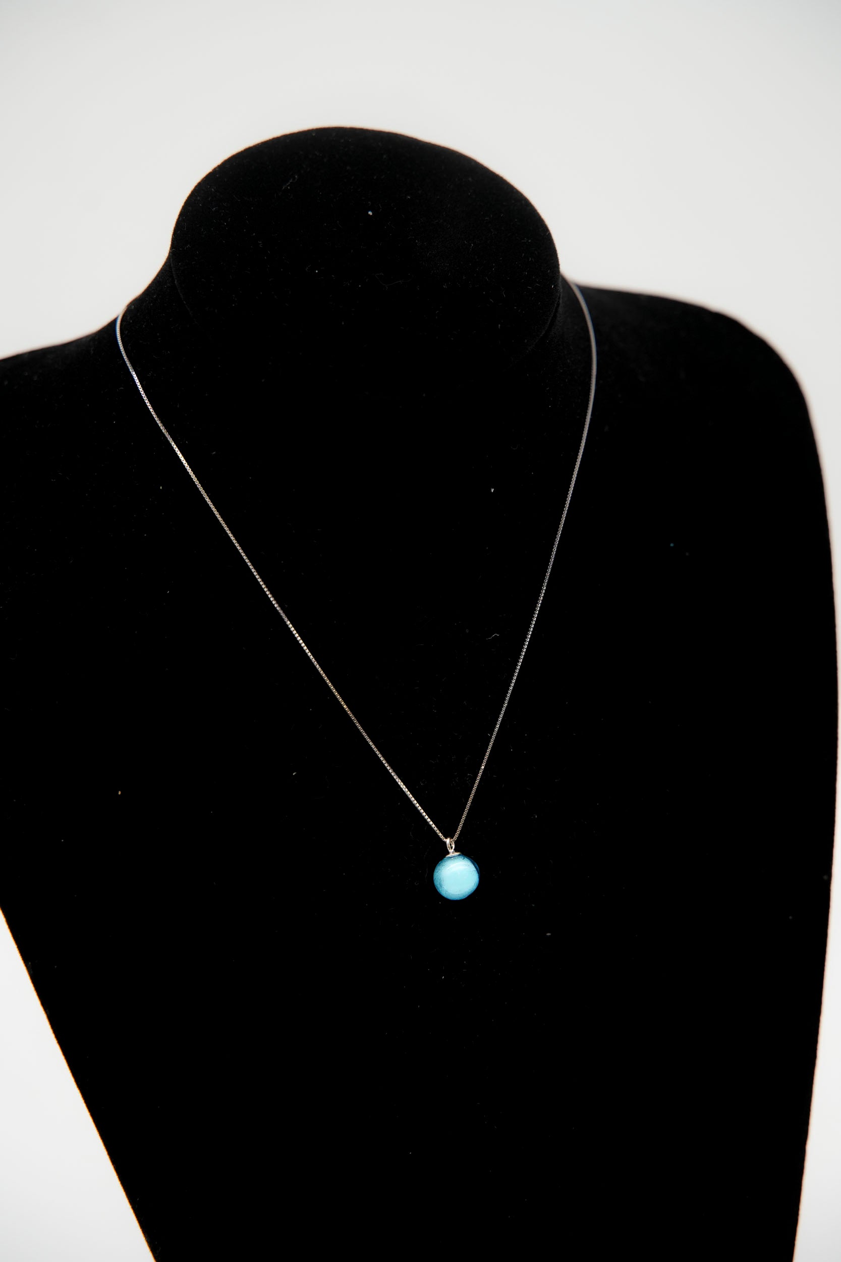 Collana raffinata e delicata, impreziosita da una perlina in vetro che riflette la luce con dolci sfumature. Il suo design minimal la rende un gioiello versatile, perfetto da indossare ogni giorno o per dare un tocco elegante a un look speciale.