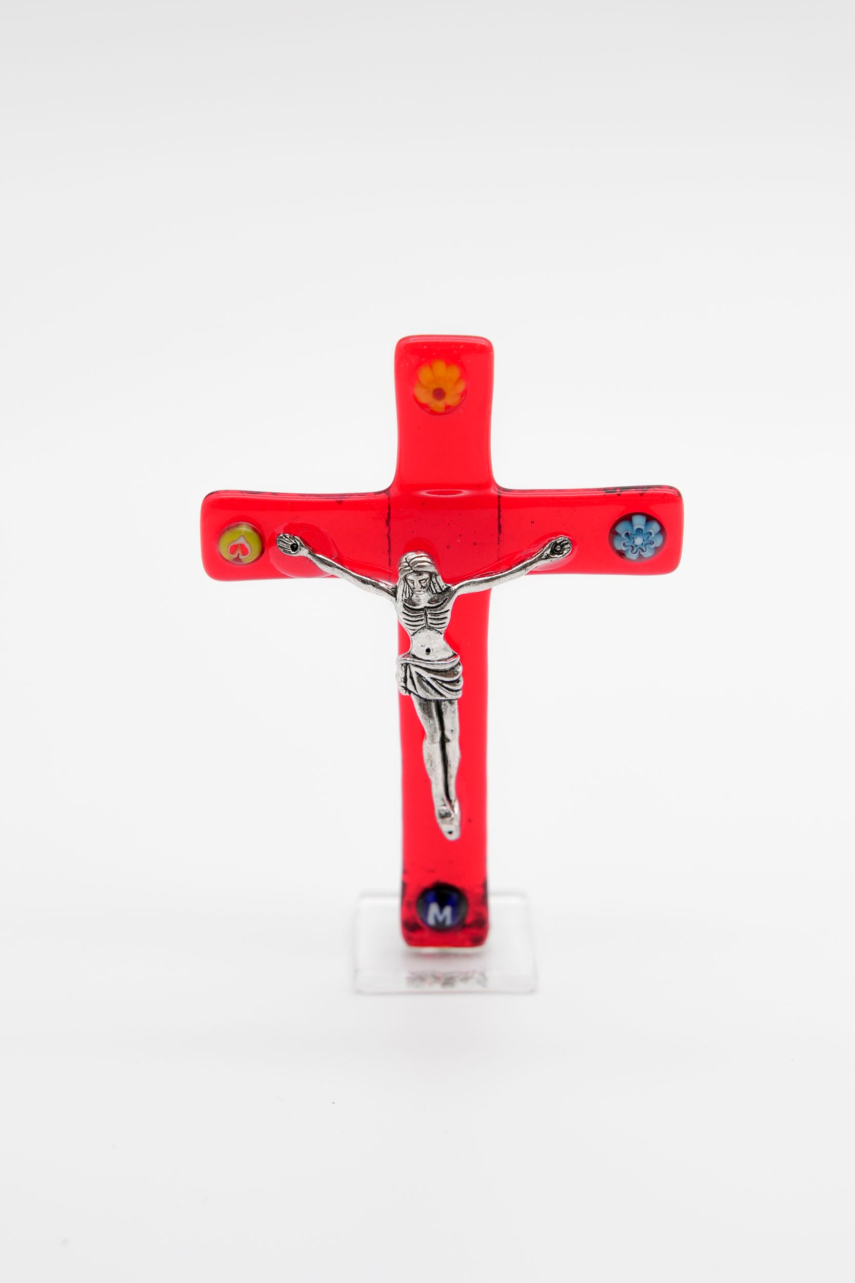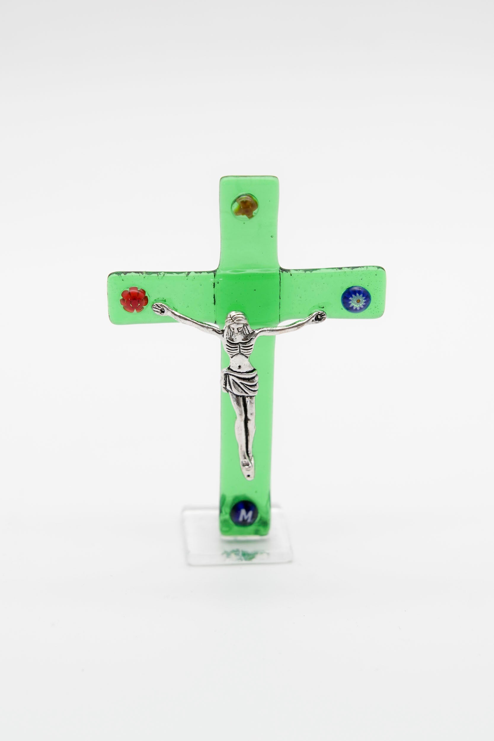 La brillantezza del vetro e le sfumature vivaci rendono questo oggetto perfetto sia come simbolo di fede, sia come elemento decorativo di raffinata eleganza.