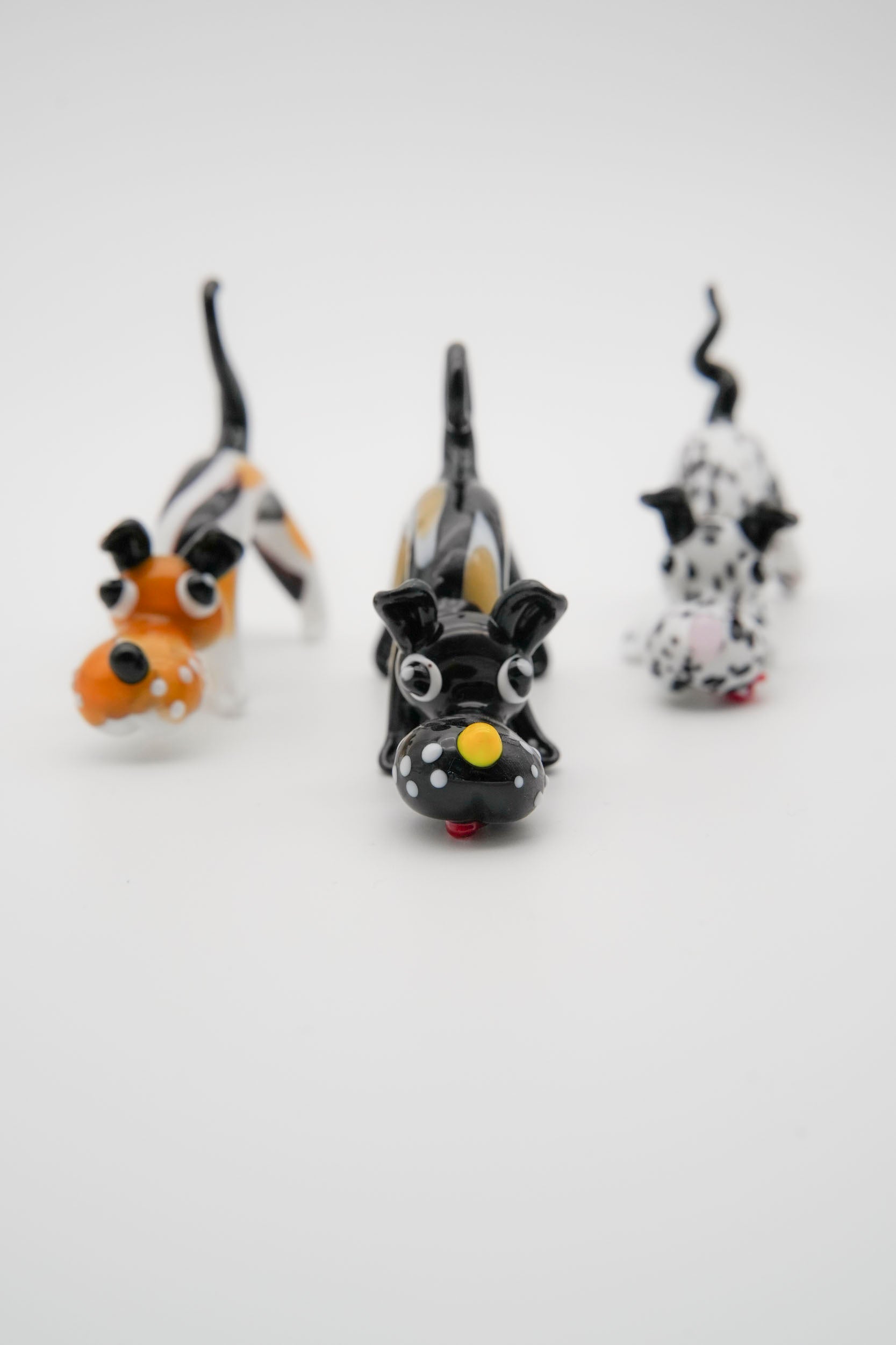 Un raffinato Foxhound Inglese in vetro soffiato, modellato interamente a mano con maestria artigianale. Questa mini scultura cattura il portamento elegante della razza e il suo tipico mantello maculato: corpo nero con dettagli bianchi e vivaci zampe rosse. Ogni esemplare è un pezzo unico, capace di unire tradizione e originalità.