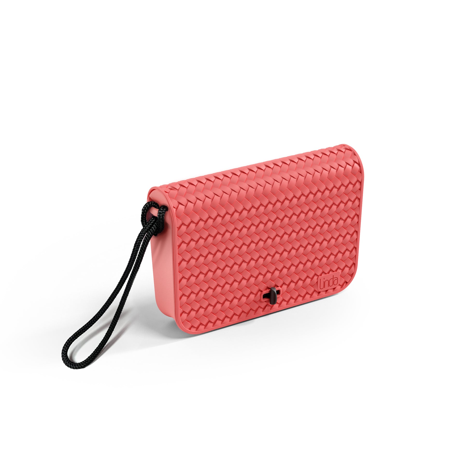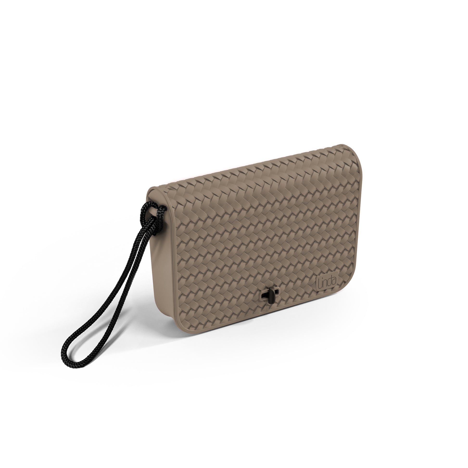 La pochette Linda grigia è un accessorio raffinato e funzionale, caratterizzato da una texture intrecciata e un comodo cinturino.