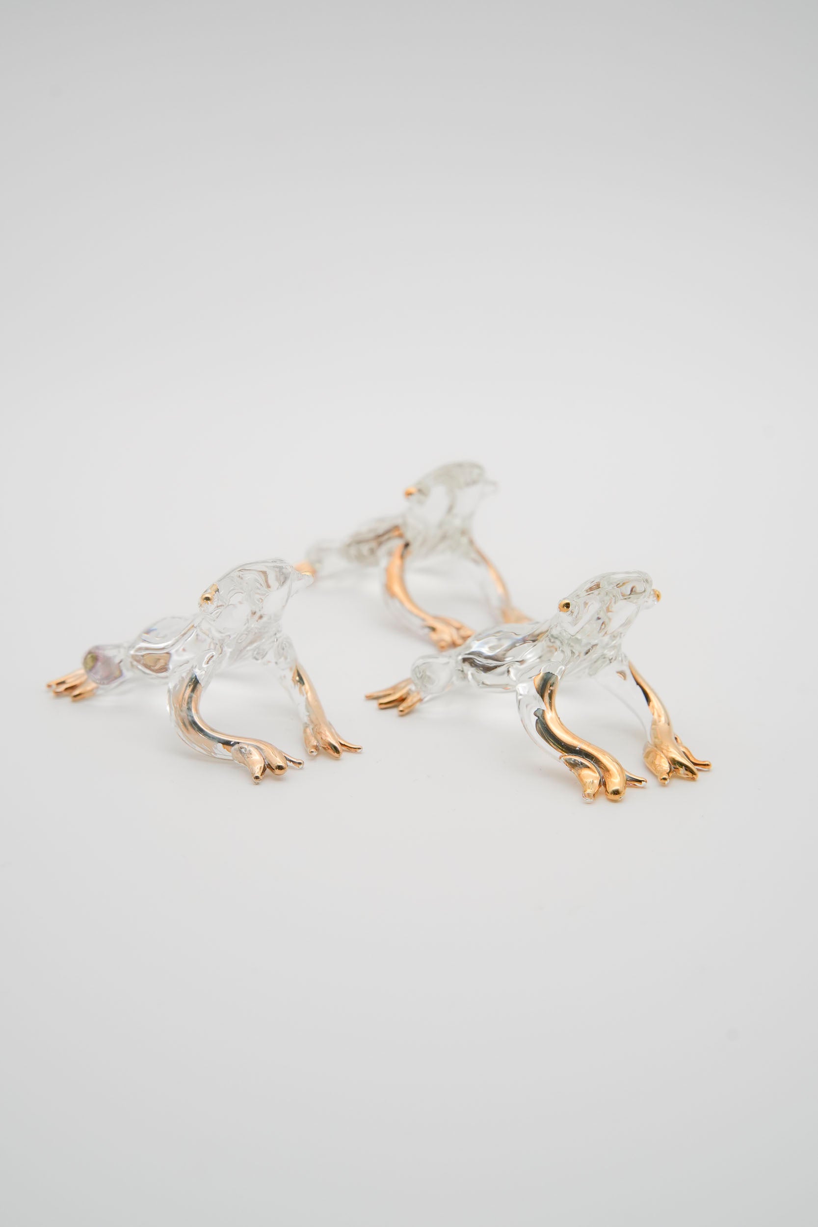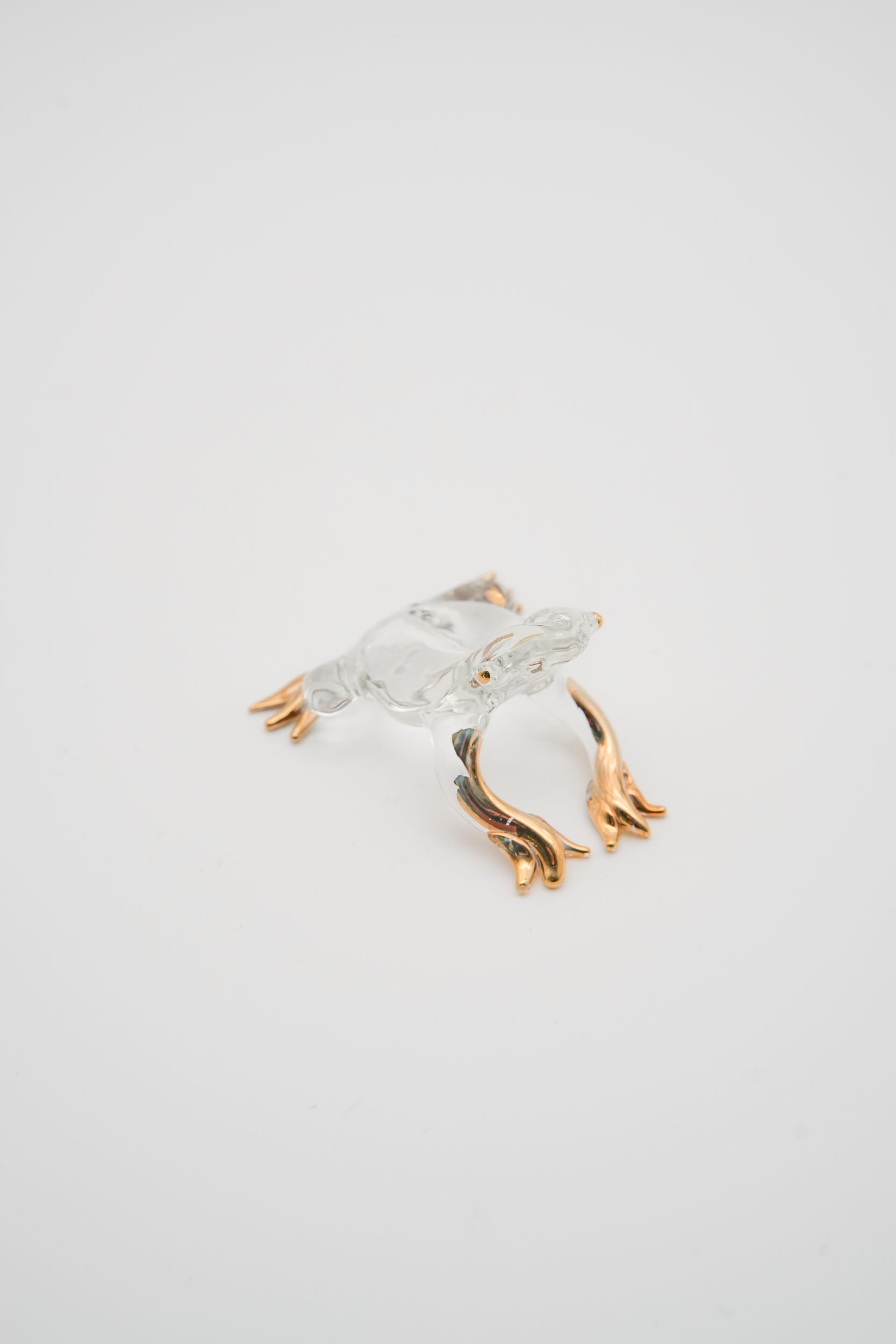 La Rana Cristallo incarna l’essenza della raffinatezza: una scultura in vetro fatta a mano che unisce la purezza della trasparenza alla preziosità dei dettagli dorati. Ogni esemplare riflette la luce con eleganza, trasformandosi in un piccolo gioiello decorativo dal fascino senza tempo.