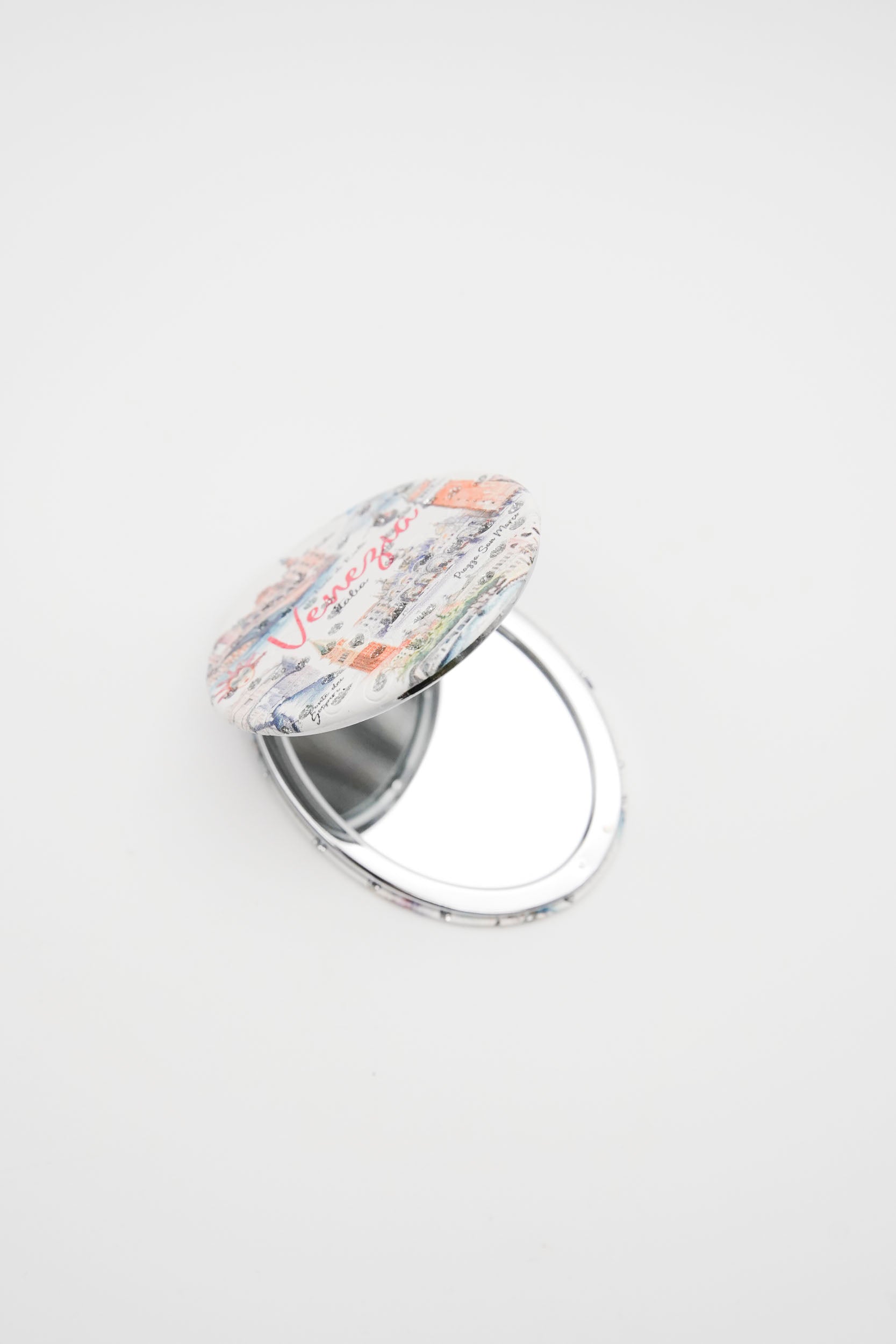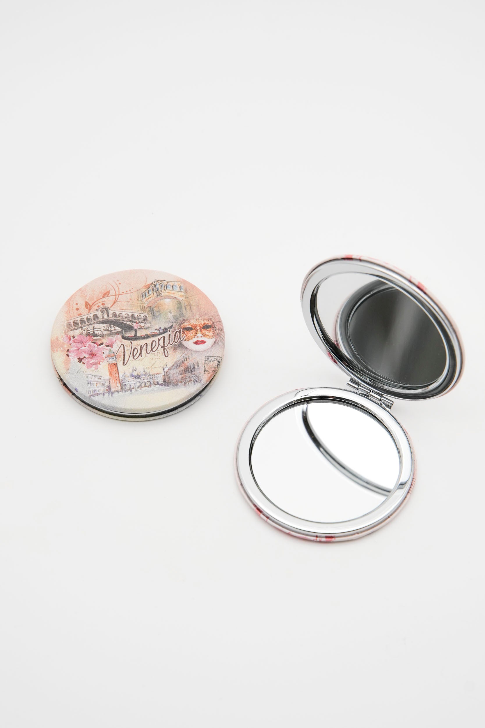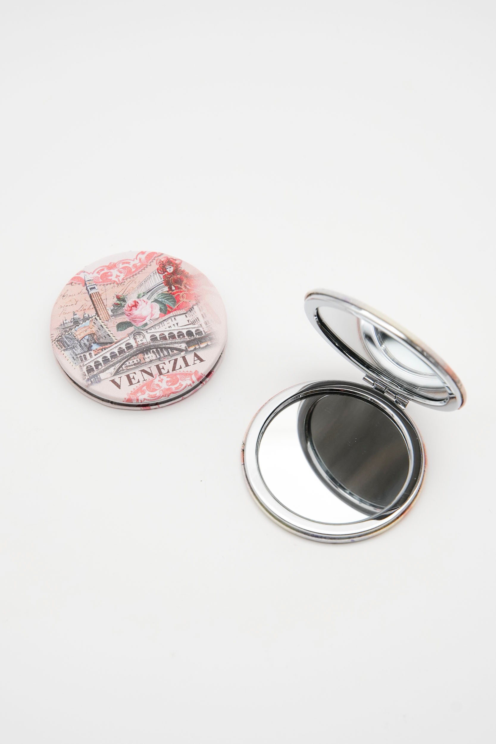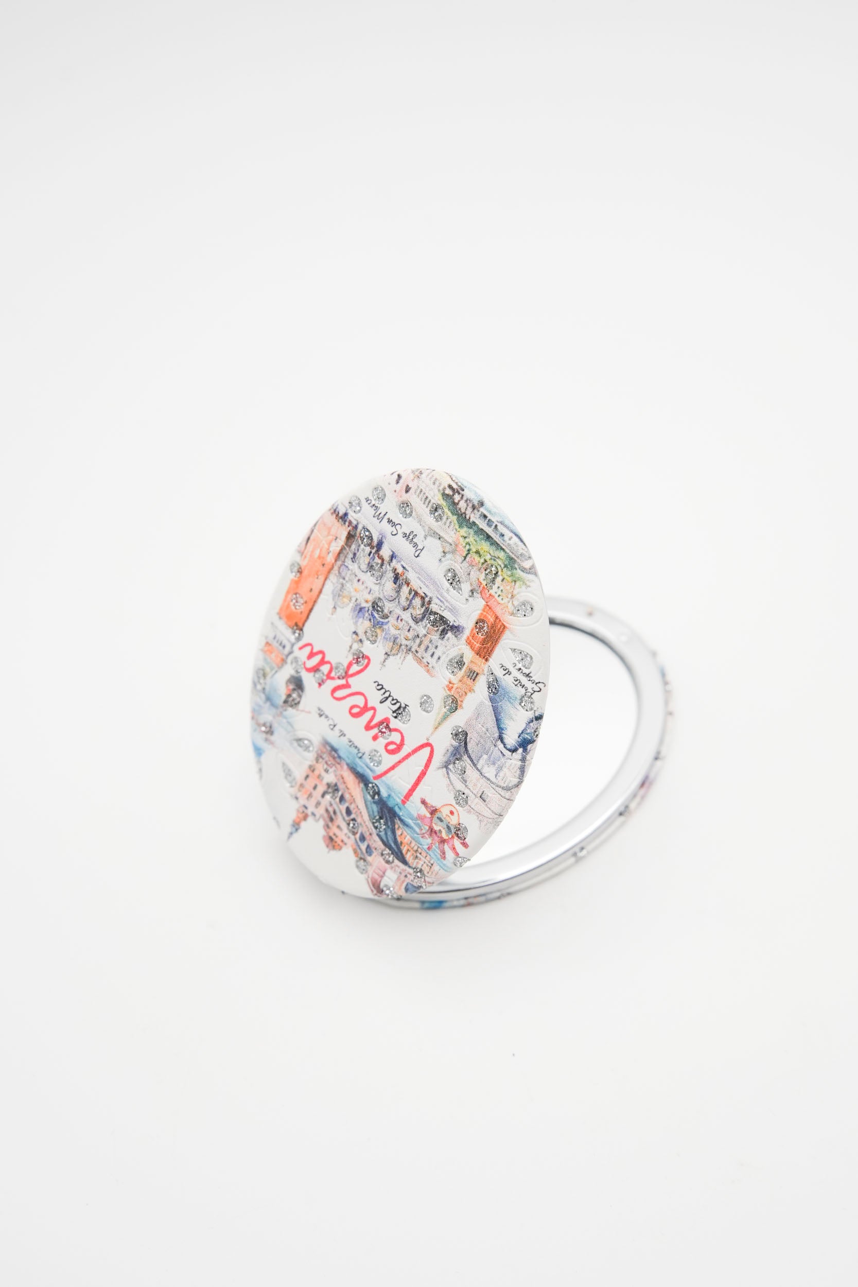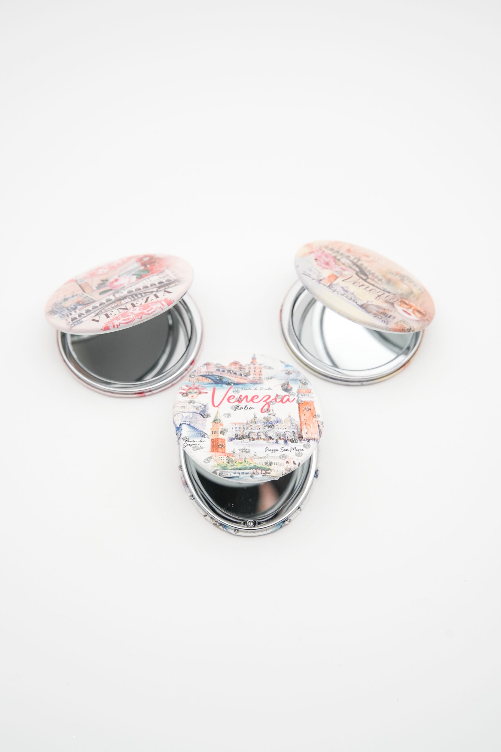 Un raffinato set di specchietti da borsa ispirati alla magia di Venezia. Ogni pezzo è impreziosito da illustrazioni artistiche che richiamano i luoghi simbolo della città, arricchite da dettagli decorativi. Compatti e richiudibili, sono pratici da portare sempre con sé e ideali come souvenir o dono raffinato.