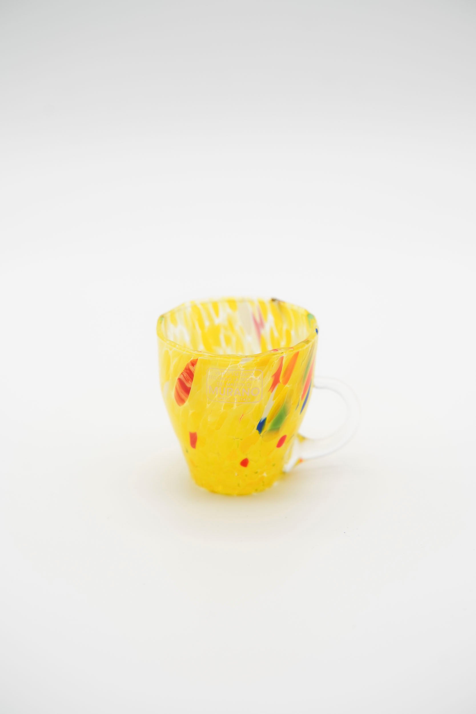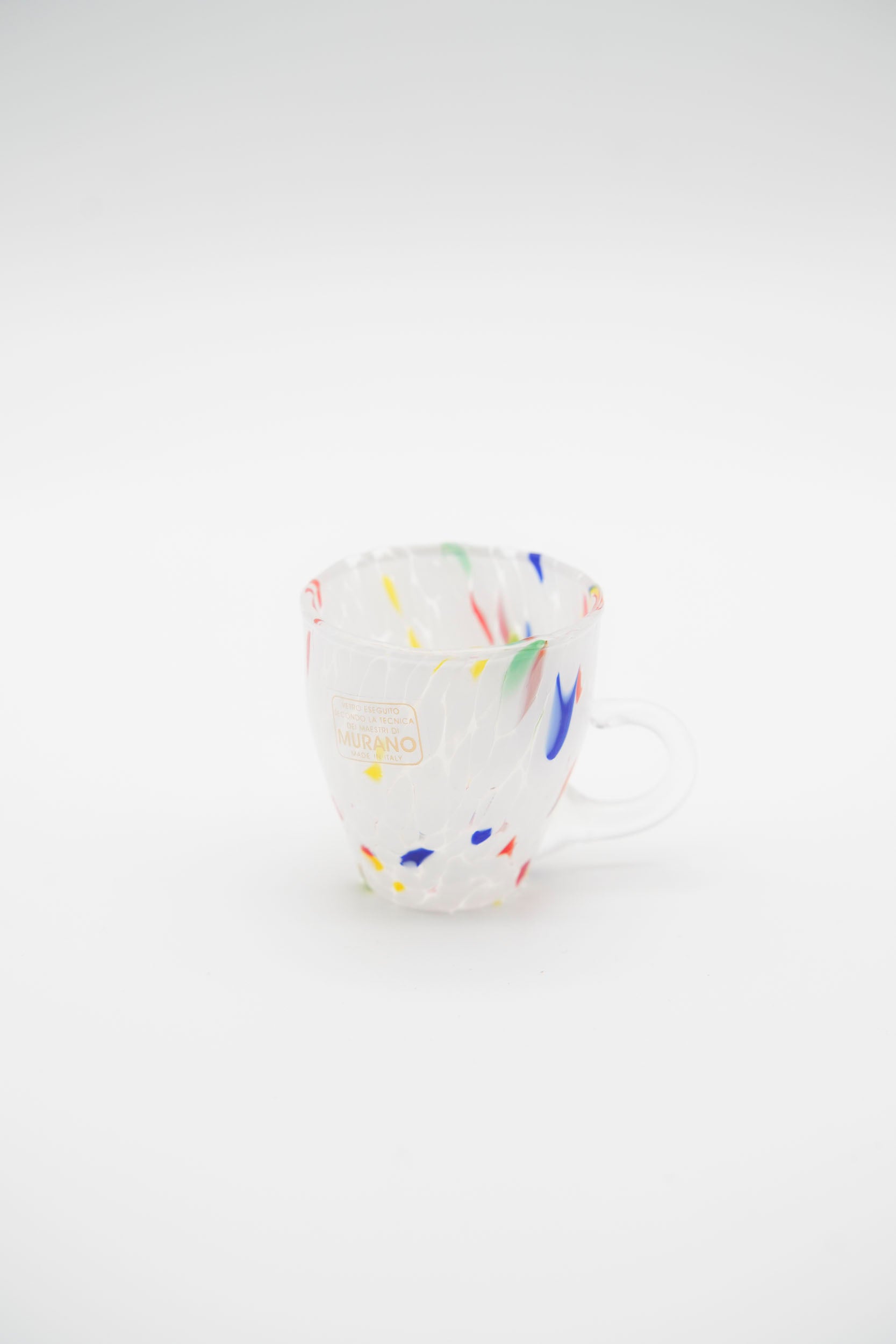 Piccole, raffinate e luminose, le Tazzine Élysée sono realizzate in vetro soffiato artigianale e impreziosite da vivaci murrine policrome. La loro forma delicata e le trasparenze colorate trasformano ogni momento del caffè in un rituale elegante e unico.