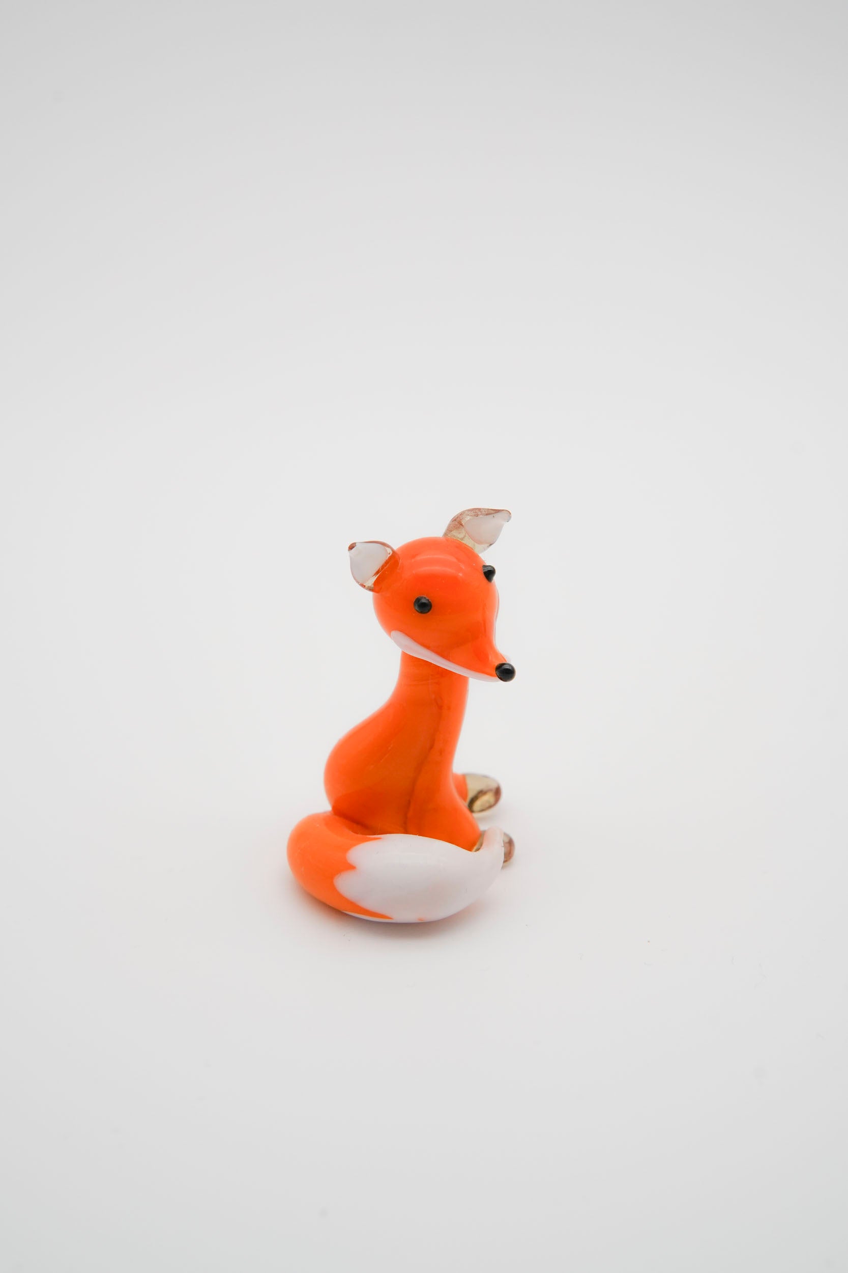 Una scultura raffinata che cattura la grazia e l’astuzia della volpe in vetro soffiato, simbolo di eleganza e intelligenza. Ogni dettaglio è realizzato interamente a mano: dalle linee sinuose del corpo alla coda bianca avvolgente, fino agli occhi attenti che donano espressività al soggetto. La tonalità arancio brillante, arricchita da contrasti bianchi e neri, rende ogni esemplare un pezzo unico di grande fascino e maestria artigianale.